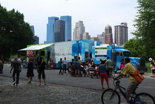O altfel de „bibliotecă”, una care promovează cărţile digitale. Digital Bookmobile a apărut în 2008, iar de atunci a fost prezentă la diverse evenimente din SUA şi Canada.