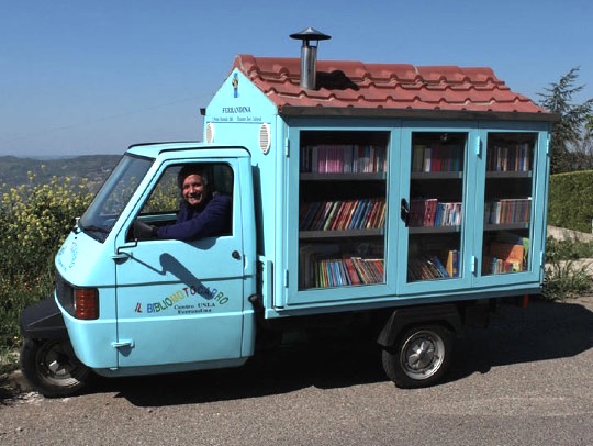 Antonio La Cava după ce a predat 42 de ani în scoală, pensionar fiind, s-a întrebat cum poate şi acum să răspândească dragostea de lectură în rândul copiilor. În 2003 a cumpărat o motocicletă şi a modificat-o pentu a găzdui 700 de cărţi. Astfel călătoreşte în satele din Basilicata, Italia şi împarte cărţi tuturor.