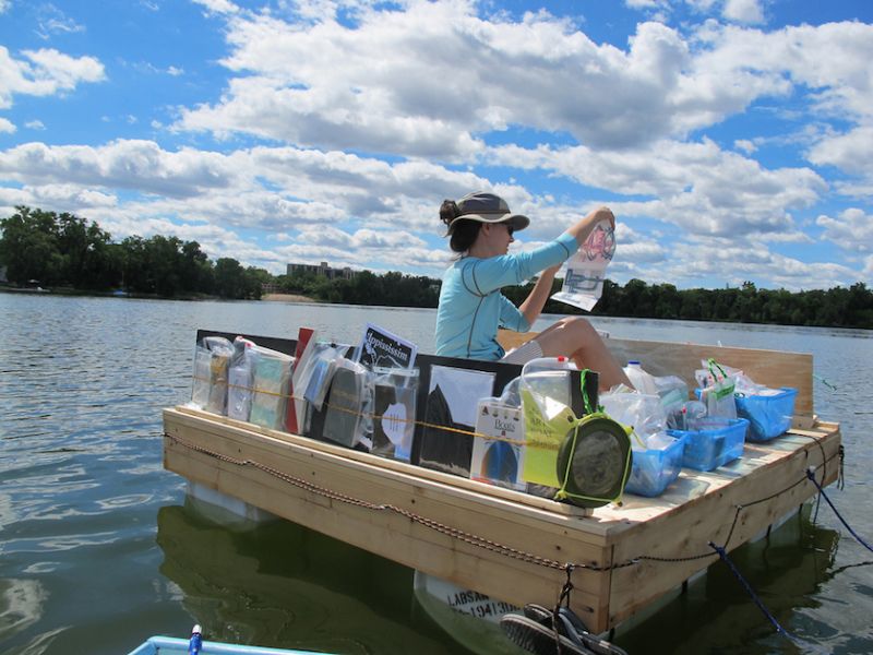 Sarah Peteres, artistă, scriitoare şi educatoare, s-a gândit la o altfel de bibliotecă, una care pluteşte. Se află în Minneapolis, SUA pe Lacul Cedar. Poţi avea acces la cărţi din barca ta şi este recomandat să nu înoţi prin apropiere.