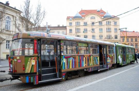 Un tramvai vechi a fost transformat într-o bibliotecă mobilă care promovează Jiri Mahen Library din Cehia. Biblioteca se deplasează zilnic 70 de km cu scopul de a sublinia importanţa şi beneficiile cititului. Vizitatorii pot scana cu telefonul anumite coduri pentru a accesa site-ul bibliotecii.