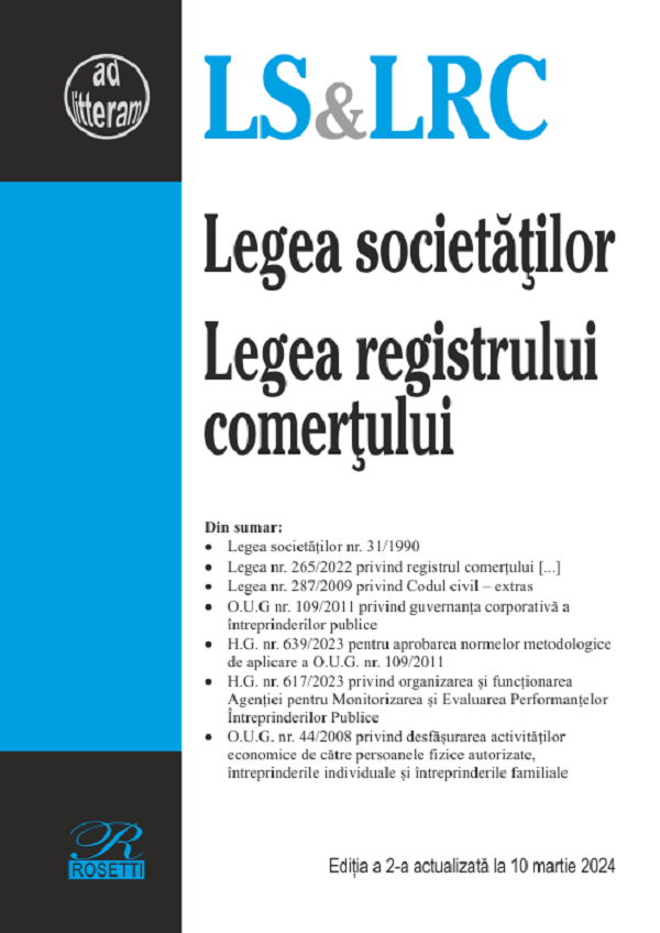 Legea societatilor. Legea registrului comertului Ed.2 Act.10 martie 2024