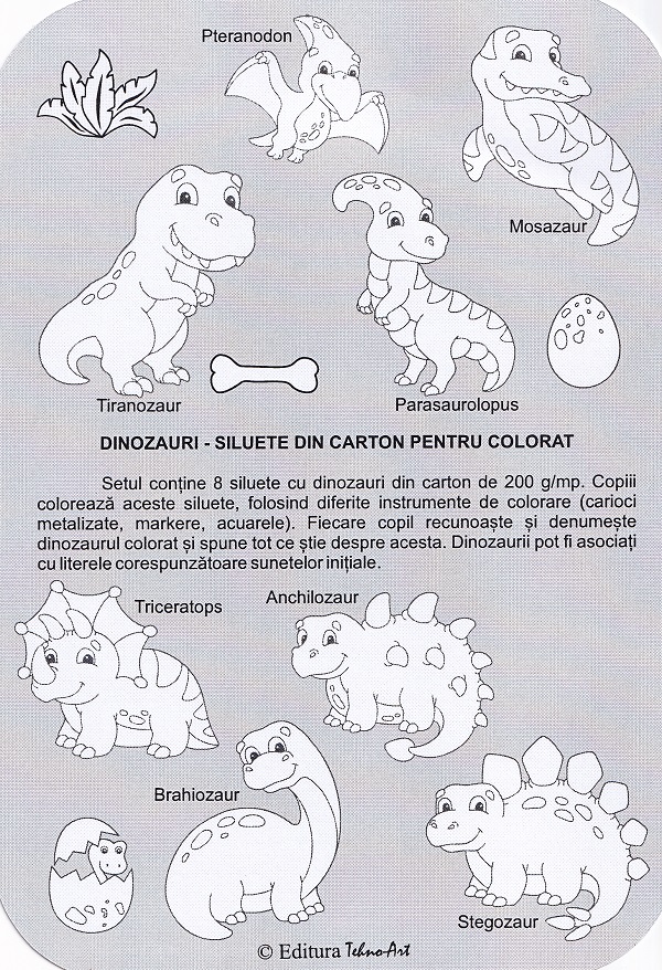 Siluete din carton pentru colorat. Dinozauri